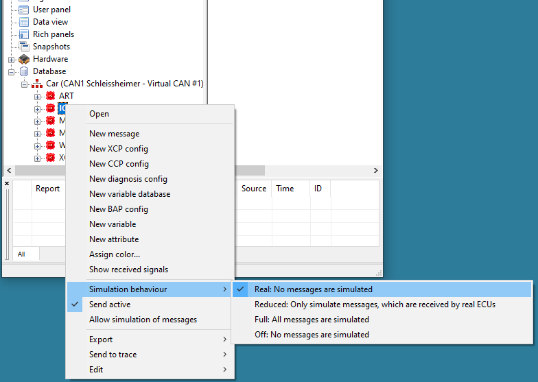 Um ein Netzwerk mit realen Steuergeräten zu betreiben, müssen Sie einstellen, welche Steuergeräte real sind und welche simuliert werden.