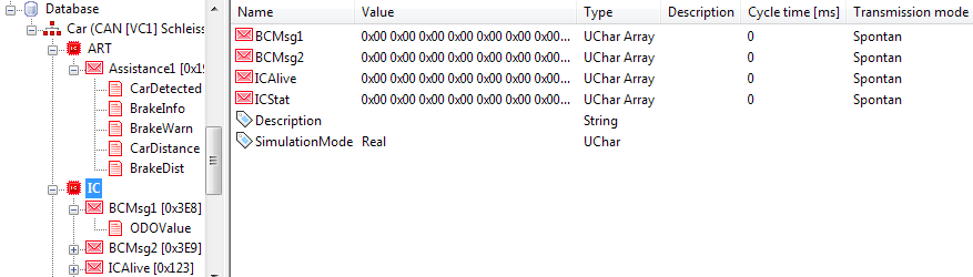 •Sie enthält alle Datenbankobjekte wie Busse, Steuergeräte, Nachrichten und Signale. •Bus (Kanal) Definition der Baudrate, Verbindung mit Hardware-Kanal •ECU Simulierte oder reale Steuereinheit •Nachricht Rahmen mit Kennung und Nutzlast •Signal Interpretation über Startbit, Bitlänge und Byte-Reihenfolge •Variabel Speicherung beliebiger Werte |