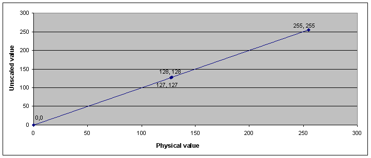 << Click to Display Table of Contents >> Navigation: Arbeiten mit CanEasy > Datenbasis-Editoren > Signal-Editor > Signalwertskalierung |